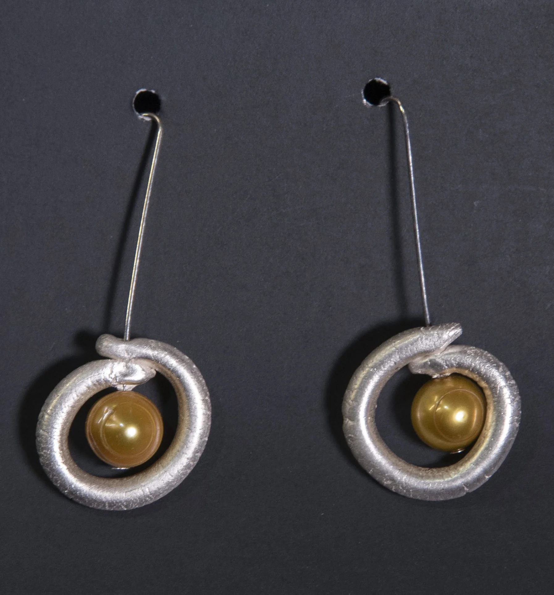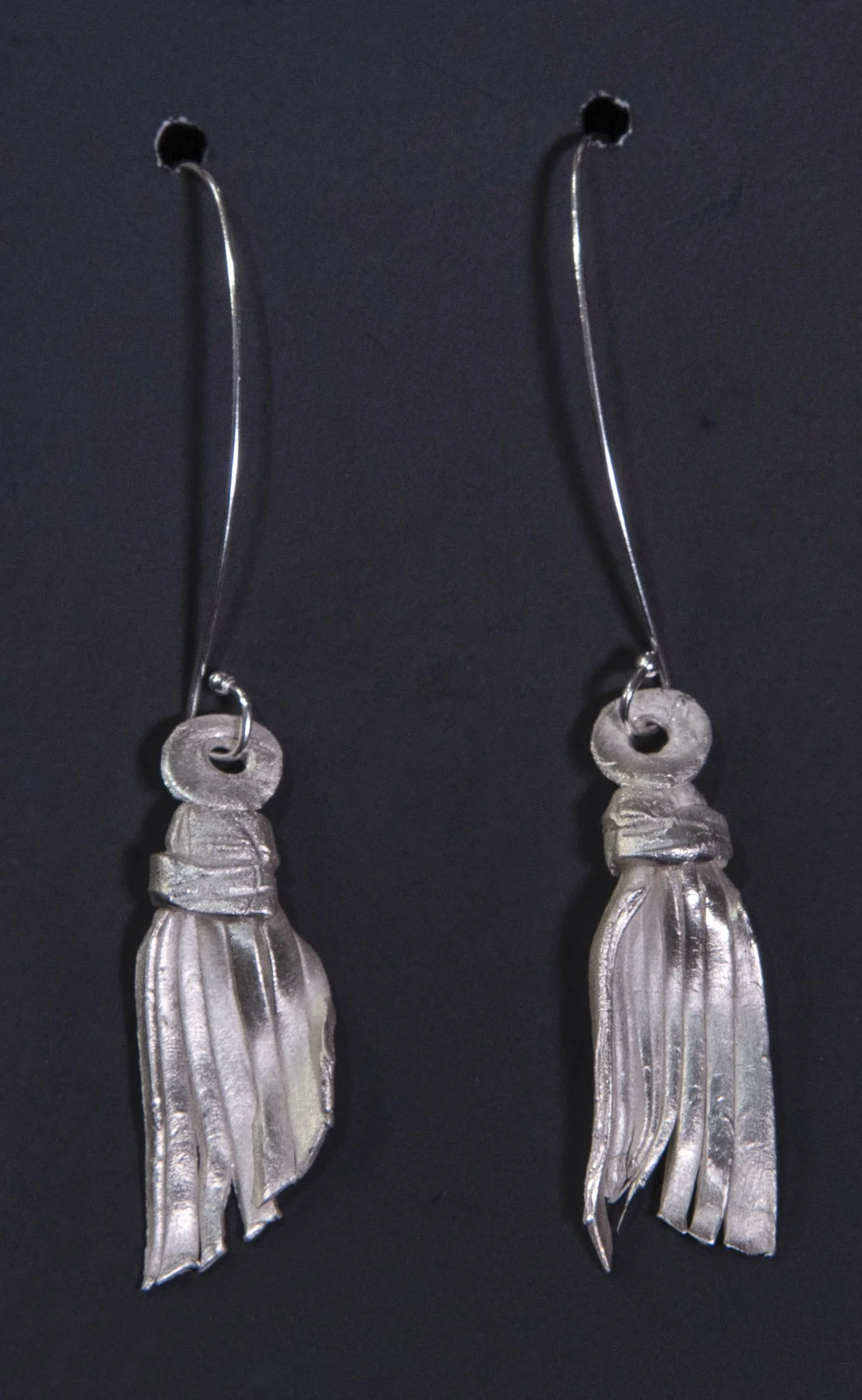 Metal clay is a crafting medium consisting of very small particles of metal such as silver, gold, bronze or copper mixed with an organic binder and water for use in making jewelry, beads and small sculptures. Originating in Japan in 1990, metal clay can be shaped just like any soft clay, by hand or using molds. After drying, the clay can be fired in a variety of ways such as in a kiln, with a handheld gas torch, or on a gas stove, depending on the type of clay and the metal in it. The binder burns away, leaving the pure sintered metal.